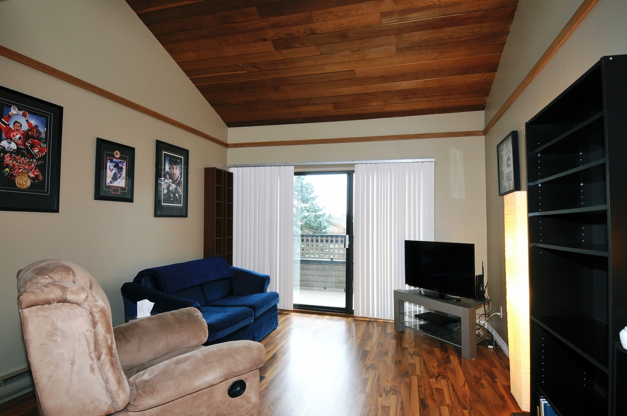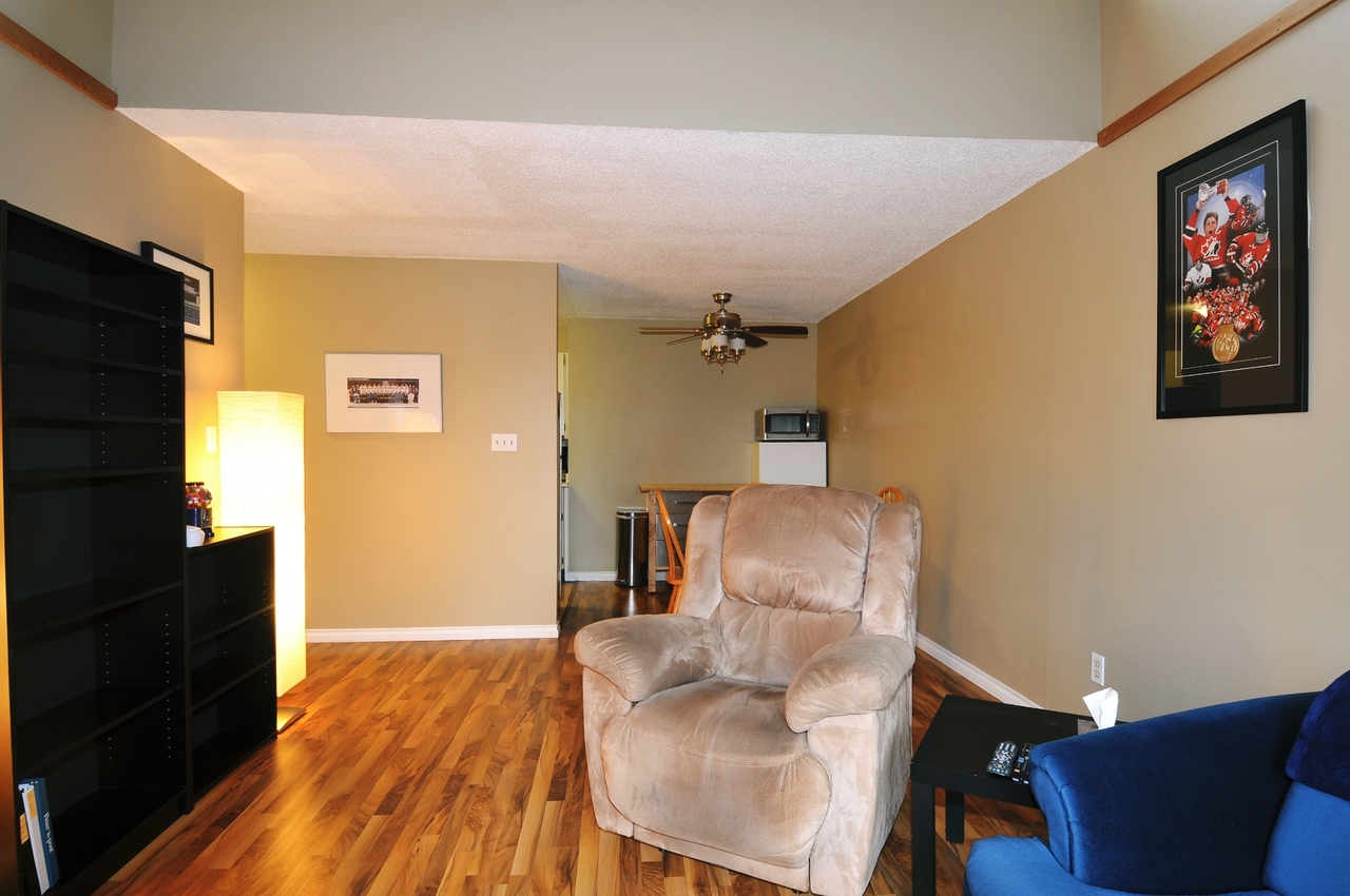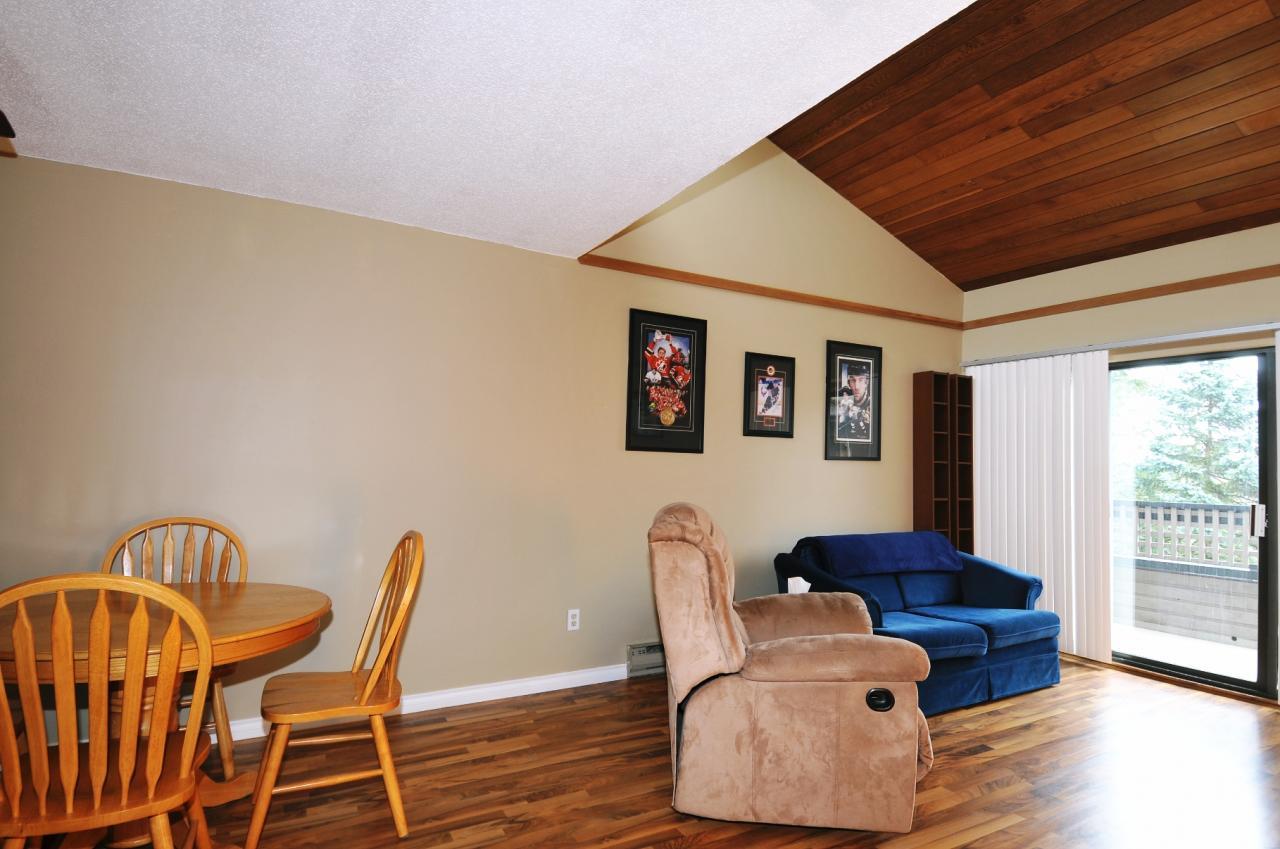 Ready to go! Top floor suite offers vaulted ceiling & skylights, laminate floors throughout and is located on the quiet side of the building. Shows great! Walk to Coquitlam Centre, Douglas College, all forms of transportation, parks, library and schools. If you considered giving up the car, this definitely works. Quick possession is possible.