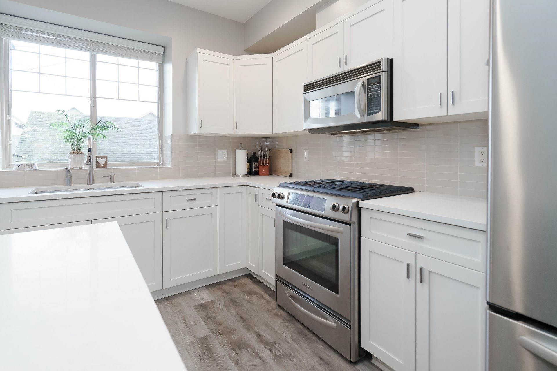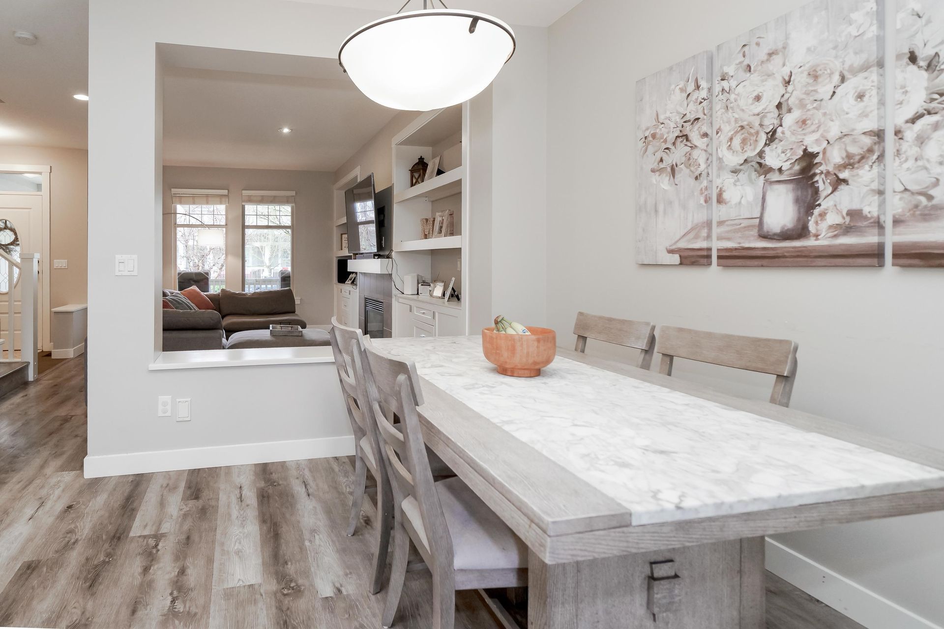 This beautifully maintained Row Home is ready for you! Enjoy a low-maintenance yard with synthetic turf, slate flagstone patio, landscape lighting, and a natural gas BBQ hookup. Inside, fresh designer paint, wide plank vinyl & laminate flooring, and a new air conditioner add comfort and style. The kitchen features stainless steel appliances and a gas range, while the living room boasts custom built-ins around a gas fireplace. Pre-wired for surround sound and plumbed for a wet bar—perfect for entertaining. Just move in! Book your showing today!