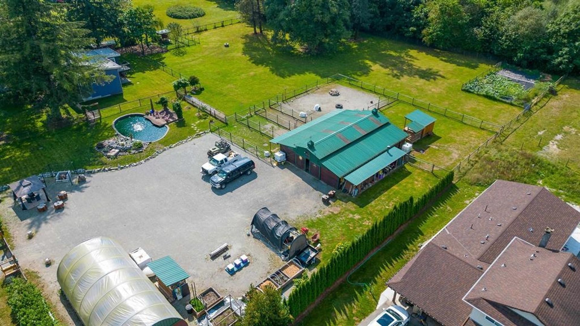 Pride of ownership!!! This beautifully renovated 3-bedroom, 2-bath home is nestled on 2 spacious flat acres in the peaceful heart of Whonnock. With an expansive, fully usable lot, the property offers room to roam and enjoy the outdoors. The main floor features a generous master bedroom with a large ensuite and walk-in shower. Fruit trees dot the landscape, and a lush garden, complete with an underground stream, enhances the serene setting. Outside, you'll find a 42' x 20' greenhouse, a barn with 4 stalls, a workshop, and a “man cave” — ideal for hobbies or projects. A perfect blend of country living and modern comforts!