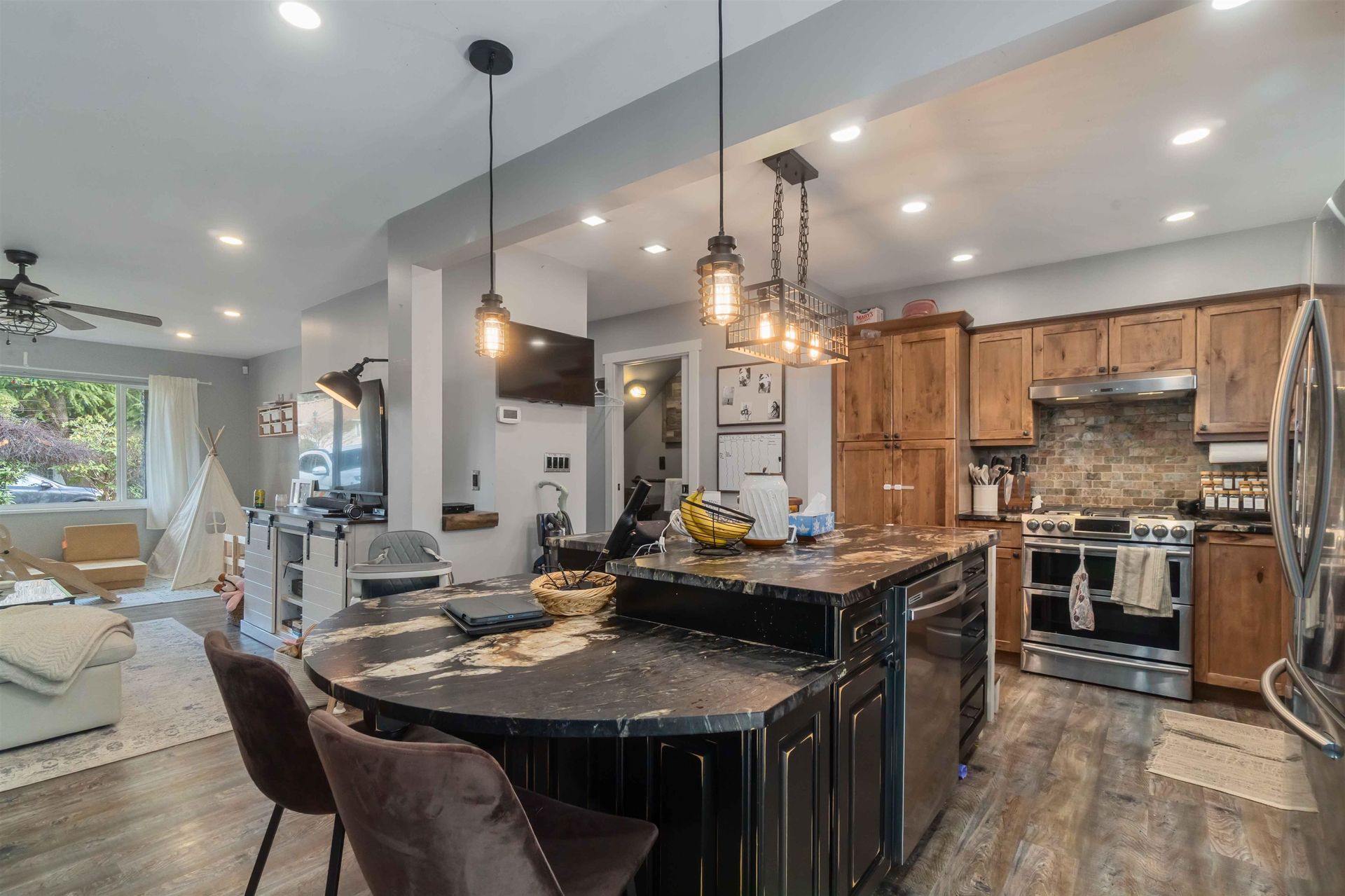 Unique Duplex Property Offering Flexibility & Income Potential! Set on a spacious 8,015 sq ft lot with convenient lane access, this full duplex is a standout opportunity in a peaceful neighborhood. Ideal for multi-generational living or generating rental income, each side offers roughly 1,280 sq ft. One unit includes 3 bedrooms and 2 bathrooms, while the other features 2 bedrooms and 3 bathrooms, with tasteful updates completed in one unit. The property also includes separate yards, a detached garage with potential for additional use, and plenty of parking for vehicles and RVs. Just a short stroll to the Coquitlam River, this property combines location, lifestyle, and investment appeal.