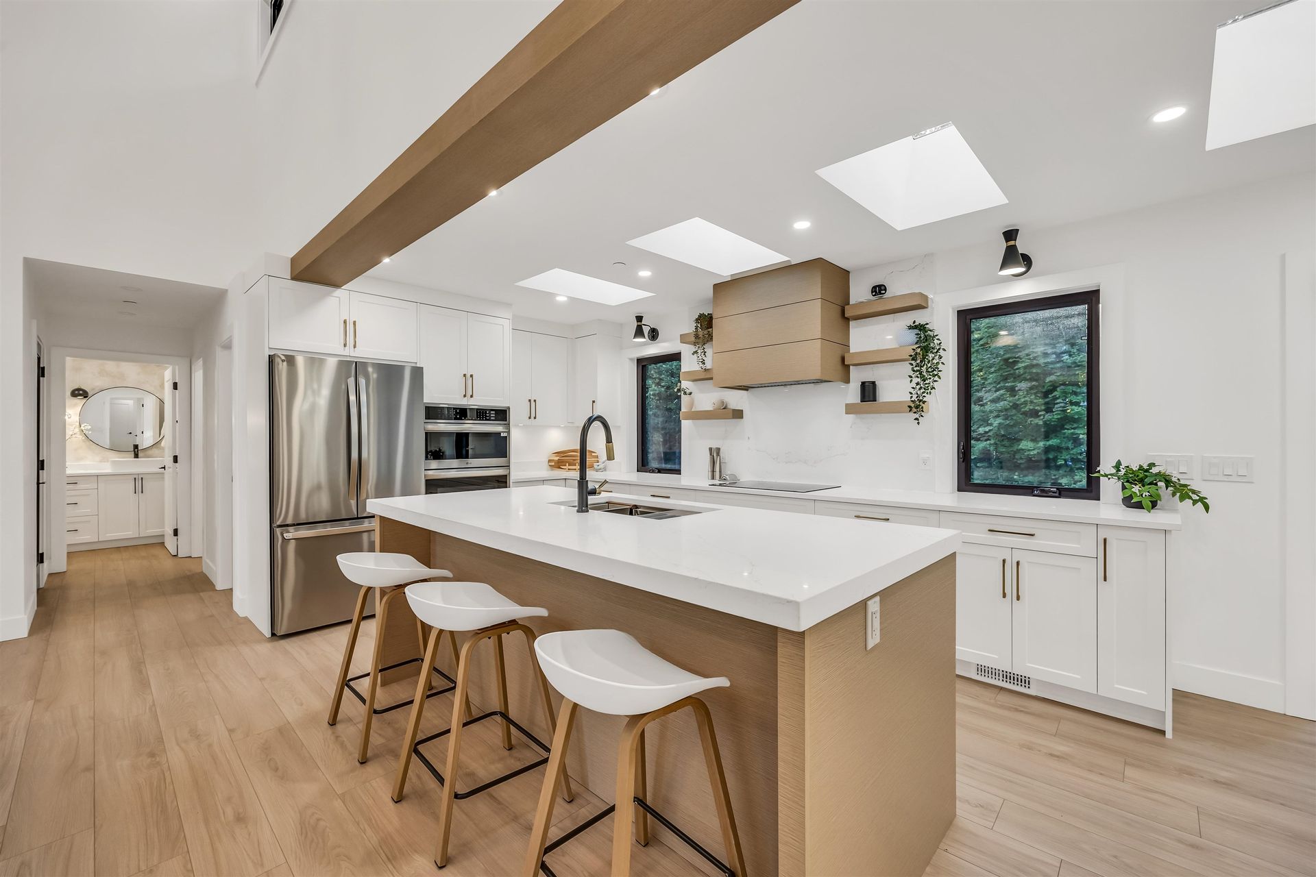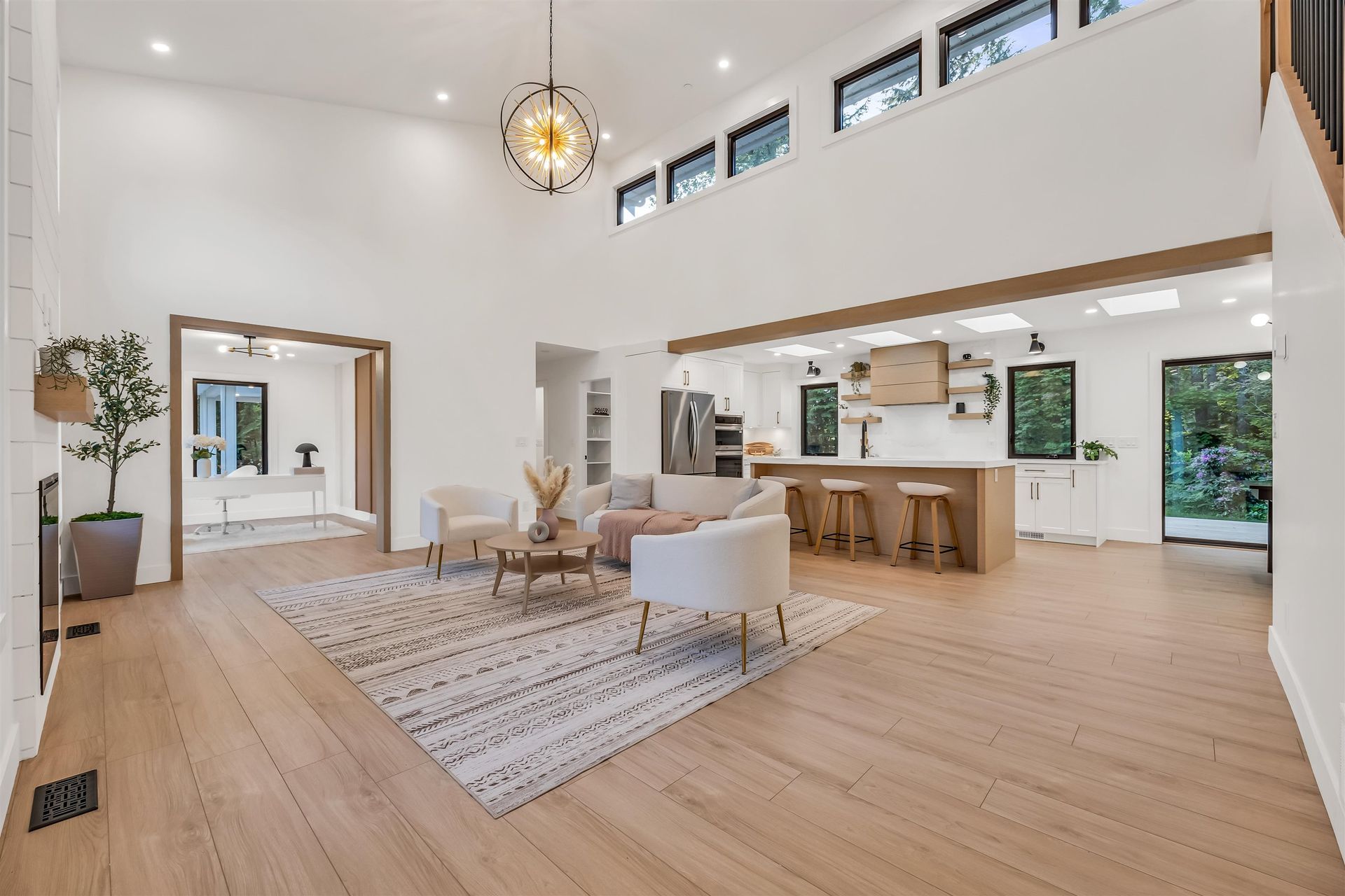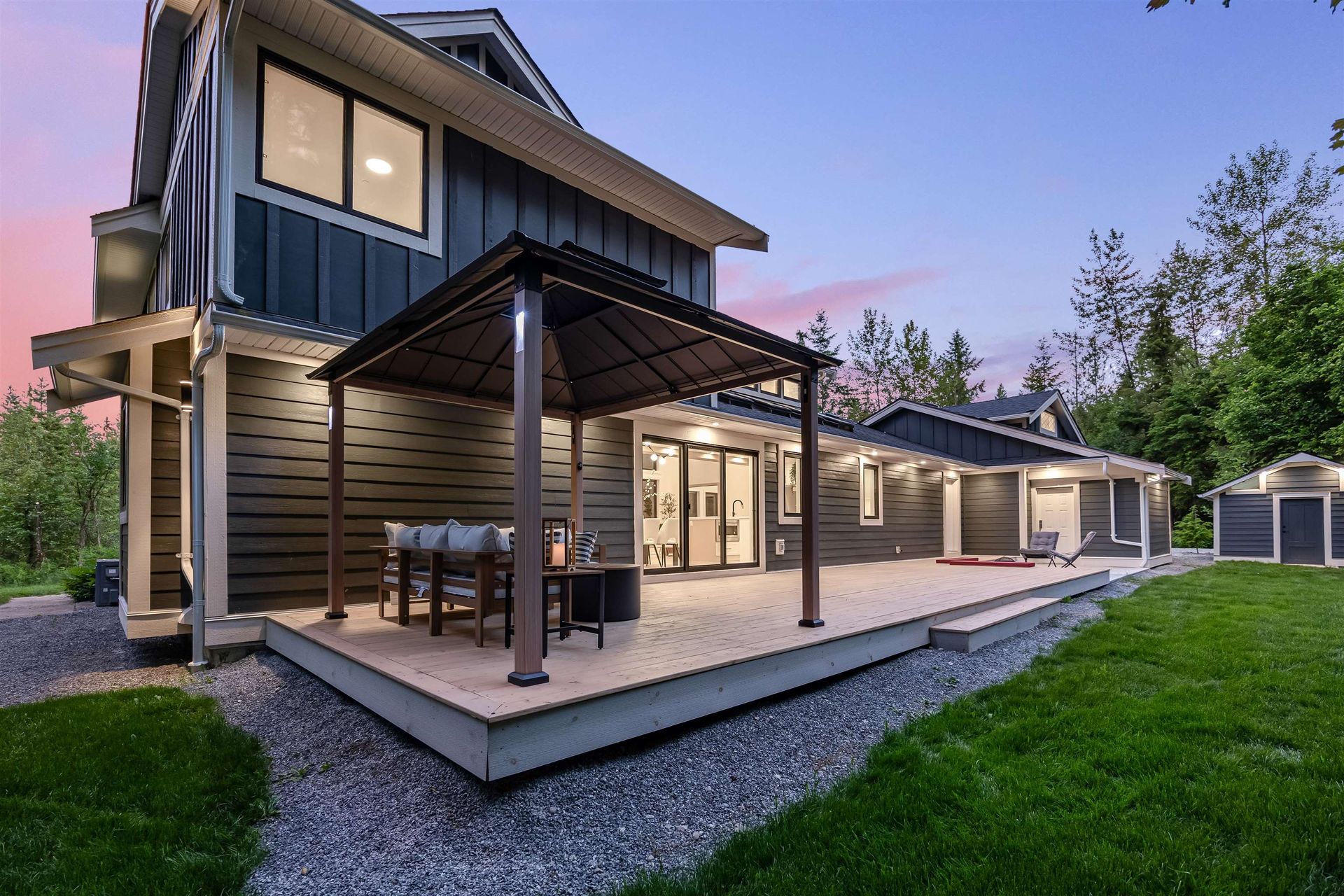 The perfect family retreat—completely renovated and move-in ready! This 4 bed, 4 bath home sits on a flat, gated 2.5-acre lot surrounded by trees for privacy and room to play. The open-concept layout offers bright, spacious living with large windows and a high-end kitchen featuring premium appliances, quartz counters, and a walk-in pantry. A main-floor bedroom with ensuite is great for guests or in-laws, while a dedicated office is ideal for working from home. Step outside …to a large deck—perfect for family BBQs, relaxing evenings, or entertaining. With air conditioning, plenty of parking, a large garage, and a storage shed, this home combines comfort, space, and convenience for the whole family.