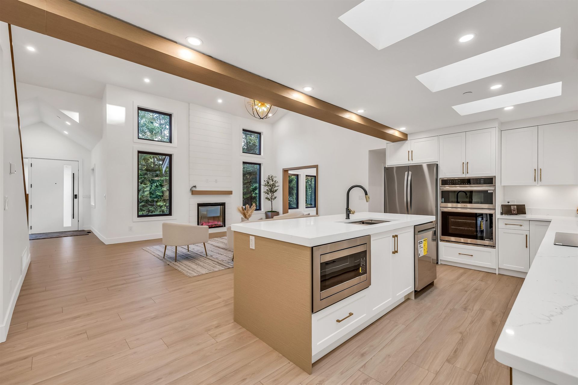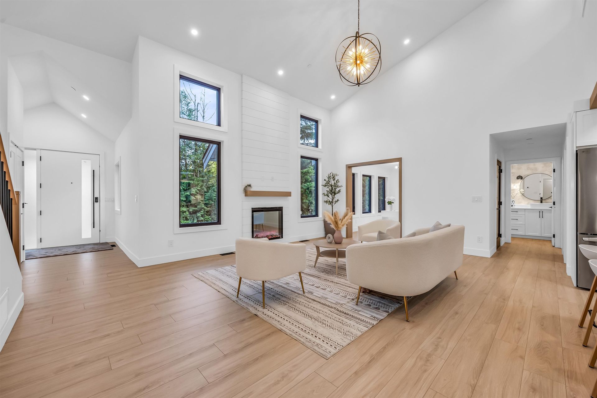 The perfect family retreat—completely renovated and move-in ready! This 4 bed, 4 bath home sits on a flat, gated 2.5-acre lot surrounded by trees for privacy and room to play. The open-concept layout offers bright, spacious living with large windows and a high-end kitchen featuring premium appliances, quartz counters, and a walk-in pantry. A main-floor bedroom with ensuite is great for guests or in-laws, while a dedicated office is ideal for working from home. Step outside to a large deck—perfect for family BBQs, relaxing evenings, or entertaining. With air conditioning, plenty of parking, a large garage, and a storage shed, this home combines comfort, space, and convenience for the whole family.